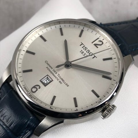 Tissot - Chemin Des Tourelles Powermatic 80 - T0994071603700Kast: EdelstaalKello: Sveitsissä valmistettu automaattinen kaliberi Powermatic 80.111.Kellotaulu: hopeanvärinenHalkaisija: 42 mm (ilman kruunua)Lasi: SafiirilasiBand: originaali musta nahkainen ranneke*Ranteen koko: 21 cmKunto: Uusi!Takuu: 1 vuosi 'de Horlogemeesters'Ei takuita renkaasta.Toimitus: alkuperäisessä laatikossa + de Horlogemeestersin aitoustodistus.Rekisteröity ja vakuutettu lähetys (DHL-express).