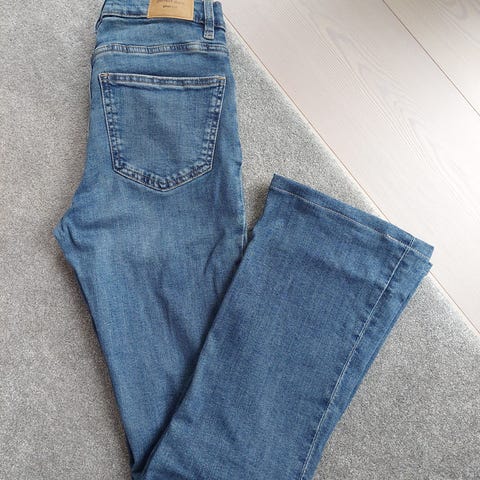 käytettynä ostetut, mutta hyväkuntoiset bootcut farkut. joustavaa materiaalia, menee noin s-m kokoiselle