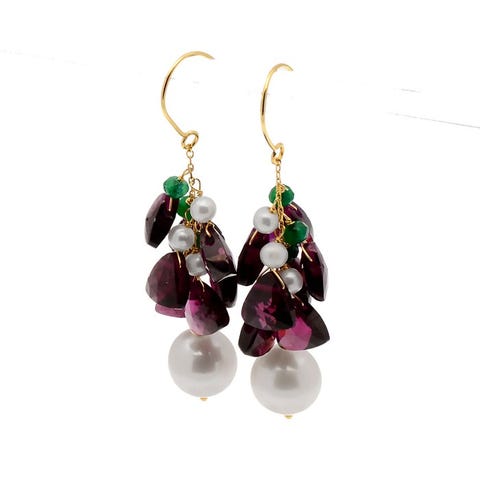 Korvakorut - 18 kt. Keltakulta Helmi - Jalokivisekoitus