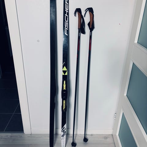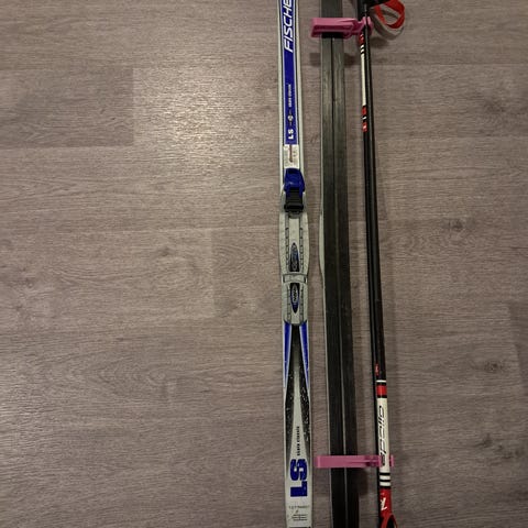 Lasten Fischer RCS sprint crown sukset 130cm ja sauvat Swix 105cm.