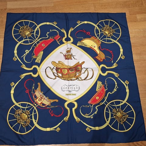 Huivin silkkikerroksen kuosi on taiteellinen, Annie French (1872-1965) taideteoksen pohjalta painettu kuva. Villakerros on klassinen beige.