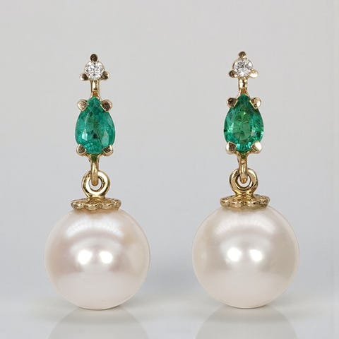 Korvakorut - 18 kt. Keltakulta Helmi - Turmaliini - Emerald