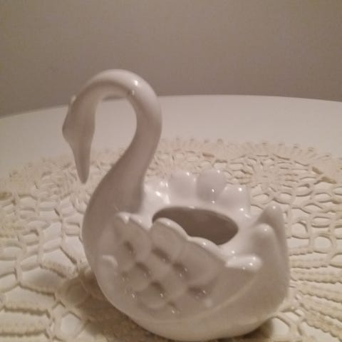 Joutsen maljakko posliinia, made in Portugal. Korkeus 20 cm, leveys 17 cm.