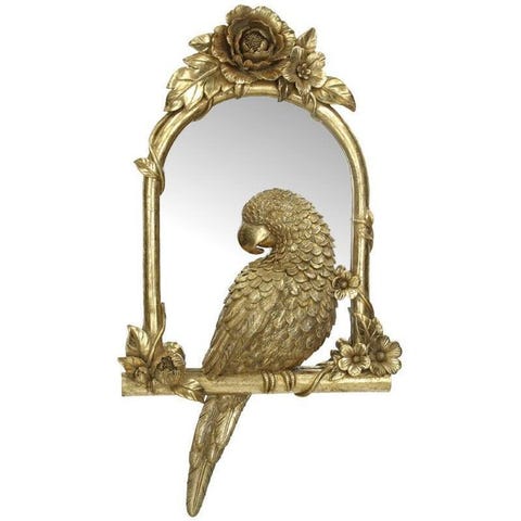 Upea peili. Kultainen sävy. Erittäin kaunis muotoilu. Linnun kanssa. Mitat ovat seuraavat (+/-):Korkeus: 53 cmLeveys: 24 cmKaikki tuotteemme pakataan huolellisesti ja lähetetään vakuutuksella.