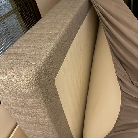 Myydään 120cm x 200cm sänky ohuella patjansuojuksella suoraan käytöstä. Tahraisen petarin saa halutessaan mukaan. Sängyssä hikitahra josta kuva ja ei ole yritetty puhdistaa (lähtenee tekstiilipesurilla), patjansuojus pesty reilu 1kk sitten.
