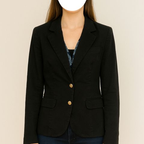 Lindex Holly & Whyte sininen naisten bleiseri, koko 38. Valmistettu villasta, sisältää myös polyesteriä ja viskoosia. Sisävuori on oranssin sävyinen kuvioitu kangas. Bleiserissä on kultaiset napit ja tyylikäs kaksirivinen malli.