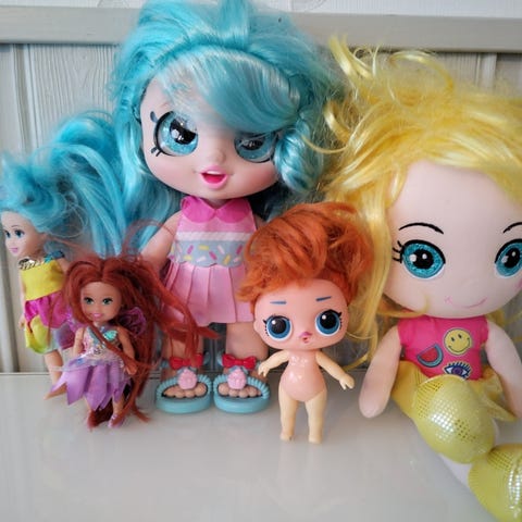 Nuket seuraavalle leikkijälle. Kunto hyvä, mutta leikitty näillä on ja tukat takussa. Muuta pientä jälkeä voi olla, mutta kaikki ehjiä. Yhteishinta 3e.