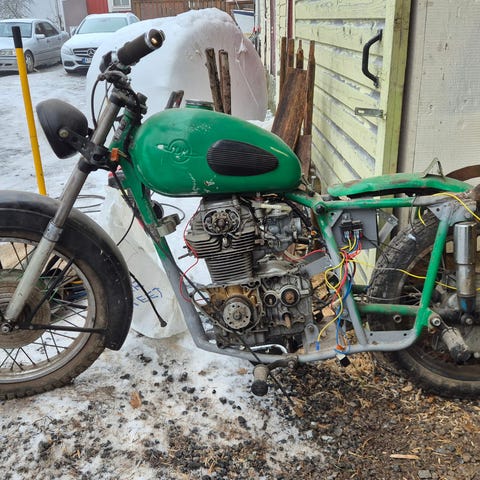 Pölyttymään jäänyt IC 350 2-tahti moottori. 1 sylinterinen, osapuutteita koneen osalta ei käsittääkseni ole. Tätä ei ole koitettu käymään aikoihin mutta pyörii edelleen ja puristuksia tuntuu hyvin poljettaessa.