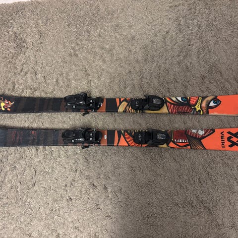 Hyväkuntoiset ja laadukkaat Völkl Ledge 128cm twintip temppusukset. Siteet Marker 7.0.