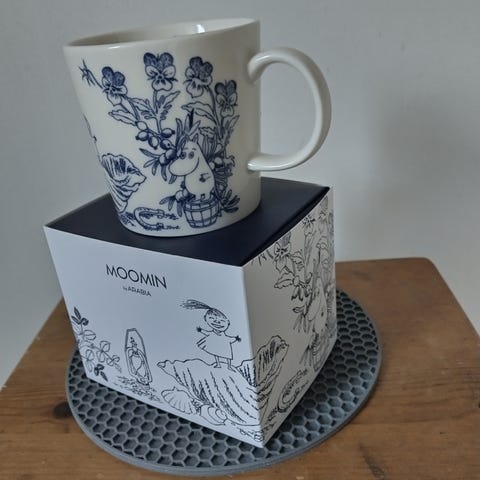 Myynnissä tuotannosta poistunut Arabian muumimuki Merituuli. Merituuli on vuoden 2023 Muumin päivä -muki. Muki on uusi ja tarra on paikoillaan. Mukin mukana tulee myös alkuperäinen lahjapakkaus.