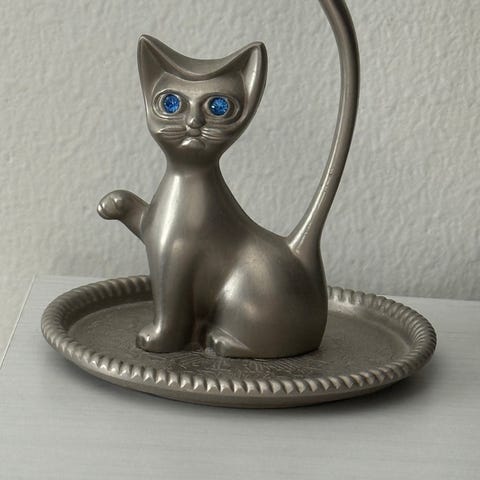 Vintage-tyylinen kissa sormusteline.