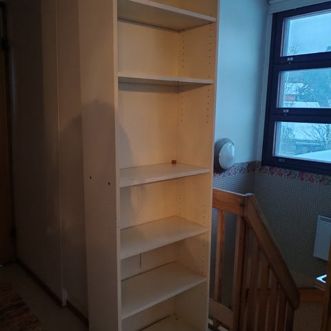 Tarpeettomana hyllykkö joka on kunnoltaan hyvä ja ehjä mutta se on maalattu seinämaalilla joka irtoaa. Hyllyt on irrotettavat. Korkeus 131cm (koristeen kohdalla 136), leveys 101cm ja syvyys 30cm. Saa hakea ilmaiseksi Espoon Soukasta (autolla pääsee oven eteen, 1 krs 8 porrasta). Ei varauksia!