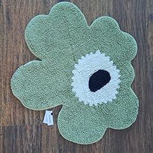 Myynnissä uusi, laput kiinni oleva kylpyhuoneen matto. Vihreä, luonnonvalkoinen.