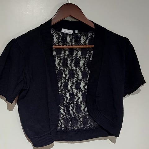 Kevään/kesän juhliin ylellinen pitsinen asuste tai bolero. Väri on vanha roosa. Kuvissa väri vähän tummempi. Ostettu sisustuskaupasta, jossa myös vaatteita myynnissä.