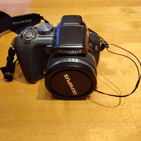 Toimiva pienikokoinen pokkarikamera. Mukaan kamera, rannehihna, akku ja laturi.