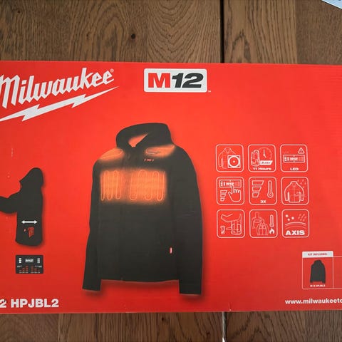 Milwaukeen lämpöpaita. Kerran kokeiltu ja kerran pesty. Mukaan kaikki mitä alkuperäisessäkin paketissa. Kaksi eri tehoaluetta.