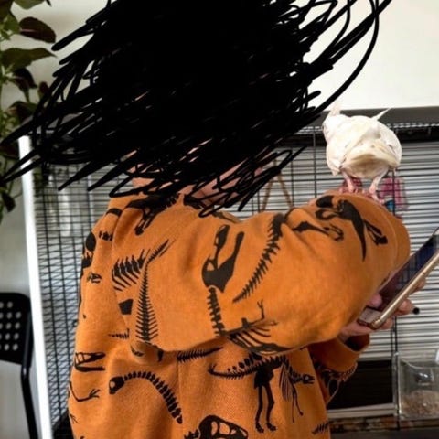 Neitokakadu noin 7 viikon ikäinen. Käsi kesy . Häkki ja lintu 200€.