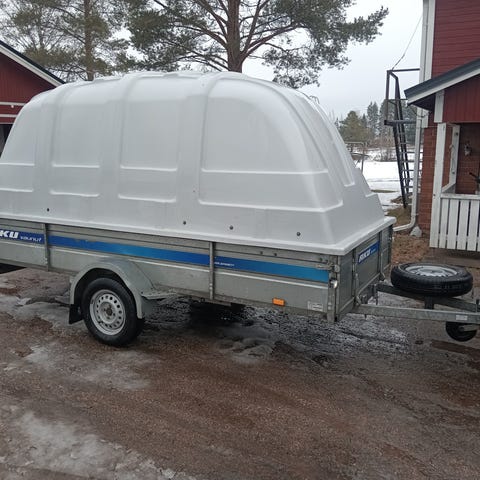 130x275 lavan koko, huippukuntoinen ja vähän vedetty Muuli, ei kuskattu kelkkoja! Sähköt alkuperäiset ja täysin toimivat, kuomu vahvistettu edestä (näiden kuomujen heikkous) kippi ja nokkapyörä.
