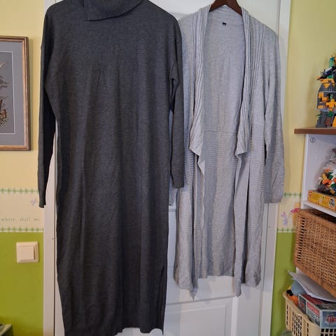 Ihonmyötäinen neulemekko, hopea hohtoinen. Koko 38.