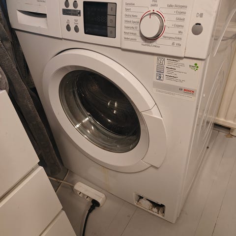 Tallikäytössä ollut pyykinpesukone. Rujo ulkoasu mutta teknisesti toimii. Vain nouto.