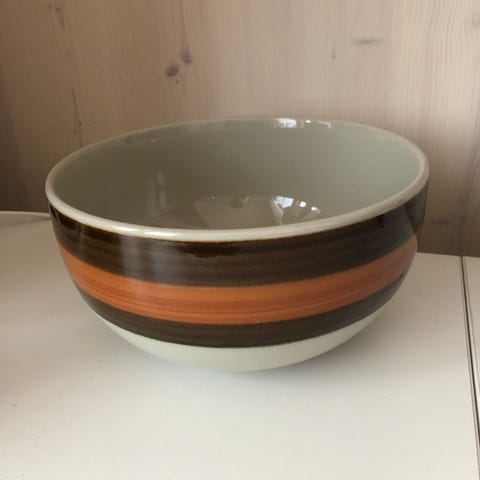 Rörstrand Amanda -sarjan neliskulmainen kulho, jonka on suunnitellut Christina Campbell ja joka oli tuotannossa vuosina 1968–1977.