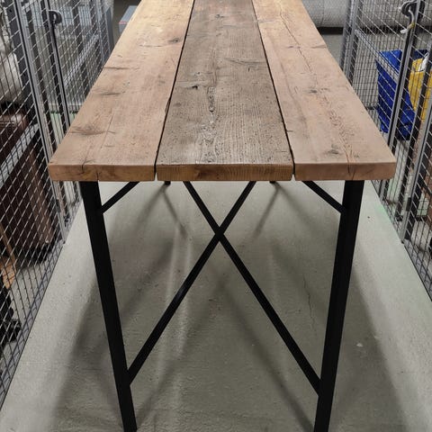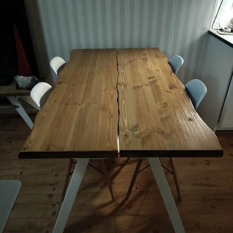 Tukeva käsintehty pöytä. Päällä valkolakka