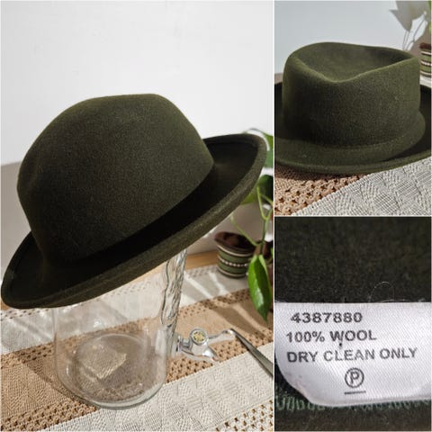 Vintage / retro hattu vihreä huopa päähine asuste jossa ehkä ajanpatinaa on. Katso kuvat. Yleisilmeeltään tosi siisti. Vaikkapa Octoberfest juhlille ;)