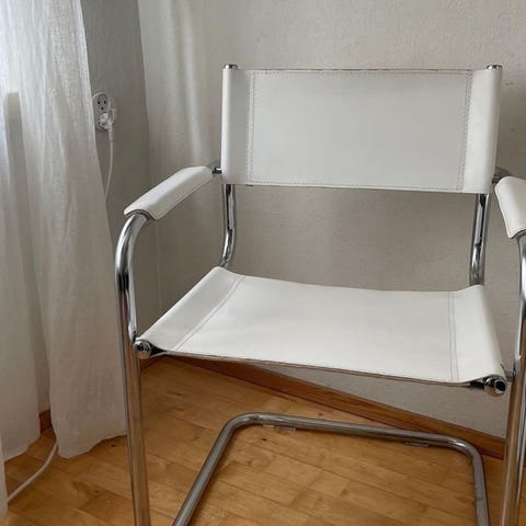 Tuolissa on näkyvissä kulumaa ja käytön jälkiä, mutta se on edelleen käyttökelpoinen.