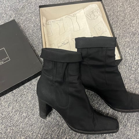 Studio Pollinin laadukkaat nahkasaappaat, koko 5 1/2. Sisävuori nahkaa, todella miellyttävät jalassa. Korkeus 40cm. Nouto Lauttasaaresta tai ToriDiili ✨