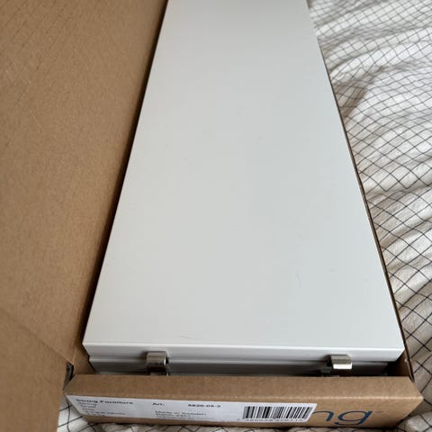 String-seinähylly, mitat 60 cm leveä, 50 cm syvä ja 15 cm korkea. Väri valkoinen.