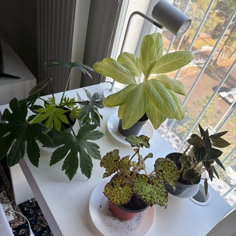 Viherkasvi huonekasvi, jossa on suuria vihreitä lehtiä. Sopii sisätilojen koristeluun ja ilmanlaadun parantamiseen.