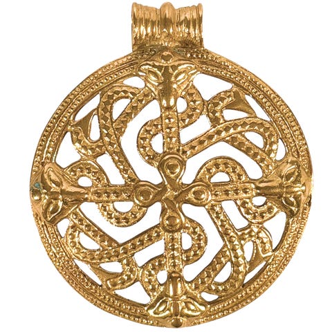 Germund Paaerin 1930-luvulla suunnittelema näyttävä koru pohjautuu viikinkiaikaisiin pyöreisiin kupurasolkiin.