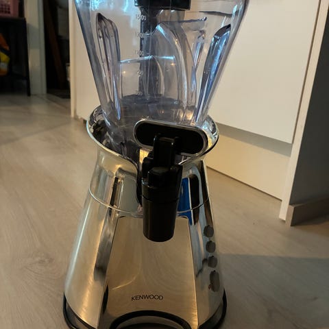 Tehosekoitin / blenderi Kenwood BL740, ollut tosi vähällä käytöllä. Melko painava, pysyy tukevasti tasolla. Metalli vähän tummunut kannuosan alta, ei vaikuta käyttöön.