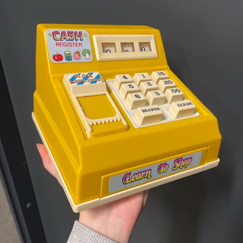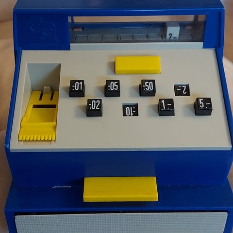 Puinen kassakone ja vaaka