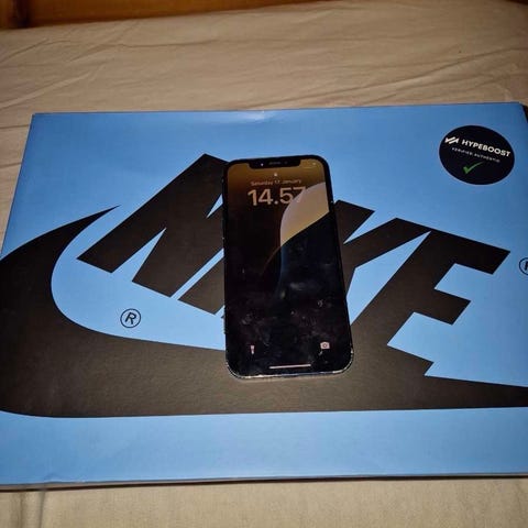 Todella siistissä kunnossa oleva iPhone 12, kivassa lilassa värissä ja pikkusen suuremmalla 128 Gb:n muistilla.