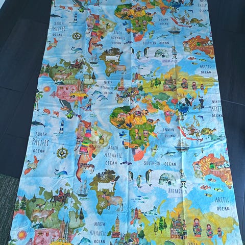 Retro-verhoja kaksi kappaletta. Ollut 70-80 luvulla omassa lapsuudessa käytössä. Säilytetty sisätiloissa. Mitat: pituus 140 ja leveys 116. Yhdessä verhossa pieni jälki, saattaa lähteä pesussa.