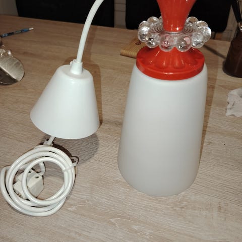 Korkeus 25 cm, halkaisija 30cm, johdon pituus 1,4m.