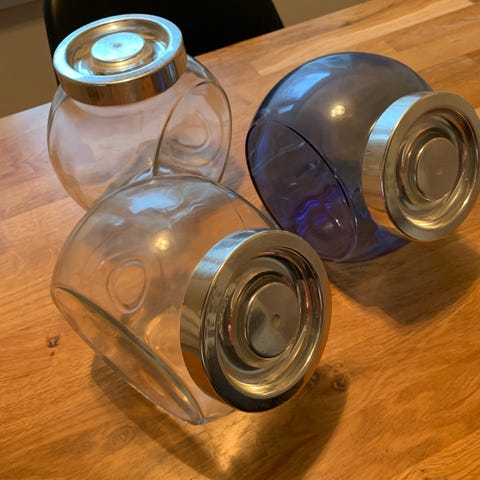 Purkit ovat hyväkuntoisia, ei lohkeamia tai halkeamia. Purkit eivät ole 100% ilmatiiviitä.