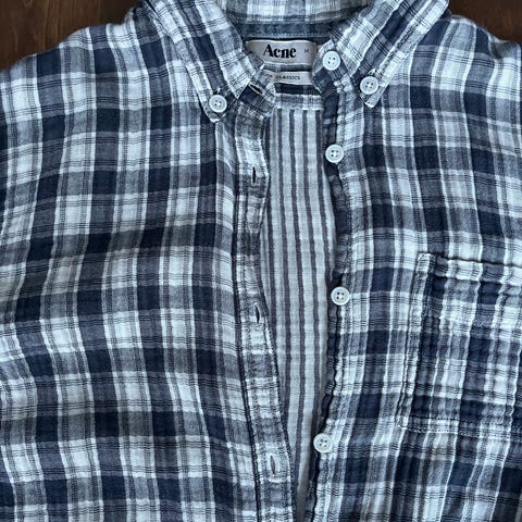 Acne Studios pusero naisille, koko 36. Valmistettu 100% puuvillasta ja väriltään vaalean sininen. Pitkähihainen malli, jossa napitus edessä ja hihansuissa. Kaunis pyöristetty helma, takaa vähän pidempi kuin edestä. Erittäin hyväkuntoinen, puhdas ja tuoksuton. Koko reilu 36. Kai-kai 56cm. Nouto/ postitus (Toridiili).