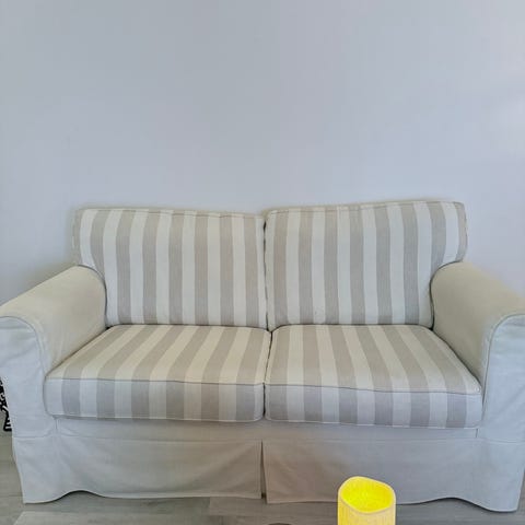Siisti sohva, jossa konepestävät tyynyt. Merkki Fyrninova ja malli Ravel. Ostettu Vepsäläiseltä vuonna 2021.