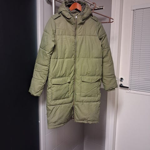 Object OBJZHANNA LONG JACKET talvitakki uudenveroisessa kunnossa. Tosi lämmin kovillakin pakkasilla - silti kevyen tuntuinen päällä. Vetskari aukeaa molempiin suuntiin. Hupussa hyvä kiristysmahdollisuua. Koko S ja vastaa kokoaan.