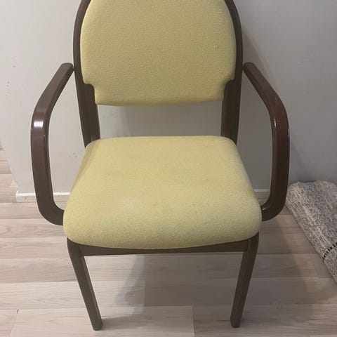 Vaaleanpunaiseksi maalattu tuoli, tukeva itua.