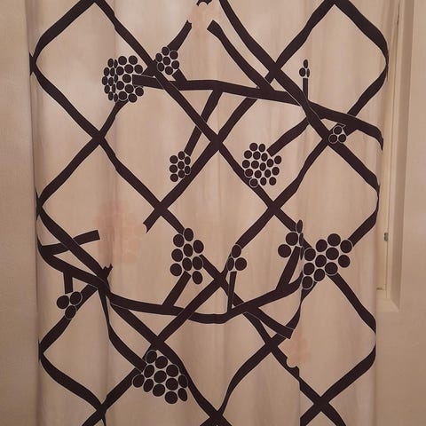 Pituus 215cm. Alakäänteessä varoja 33cm. Verhoa ei ole pesty eikä juurikaan ole roikkunut ikkauassa joten pidentäminen ei taida juurikaan näkyä. Voin pidentää jos tarve. Ylhäällä leveä verhonauha missä tankolenkit. Huom 1 verho. Kulkeutuu postissa S kokoisessa paketissa 7,9e