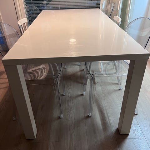 Elämää nähnyt, mutta ehjä täyspuinen ruokapöytä, jota ei ole kertaakaan hiottu. Käsittelemällä saa varmastii oivan pöydän vielä useaksi vuodeksi.