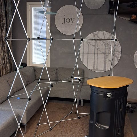 Hakusanoja: messuosasto messupöytä messu messut tapahtuma mainosseinä tapahtumaosasto POP-UP