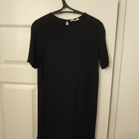 Musta keskipitkä mekko kokoa S. Yksityiskohtana pieniä reikiä, joista näkyy iho läpi. Kerran käytetty.