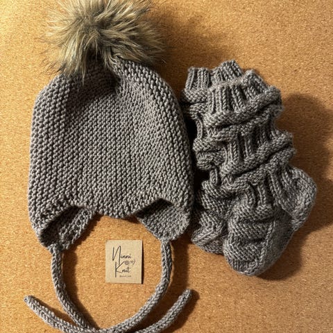 Uudet, käsintehdyt merinovilla junasukat ja solmittava pipo vauvalle
