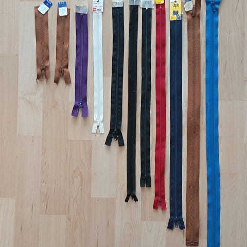 15-20 cm vetoketjut 10 kpl. Housut, hame, tasku, pussukka. Ykk, Opti.
