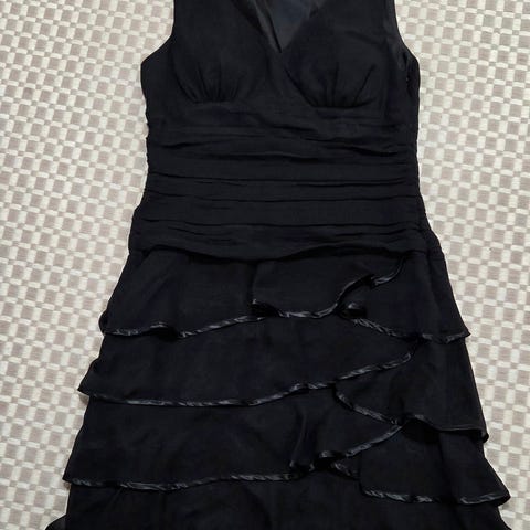 juhla- tai cocktailmekko, valkoinen, koko 38. Mekko on valmistettu sifongista ja siinä on koristeellinen yläosa. Sopii naisten käyttöön juhla- tai cocktailtilaisuuksiin.