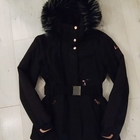 Luhta talvitakki musta, koko 36. Naisten talvitakki, jossa on vetoketjulliset taskut ja hupussa tekoturkisreunus.